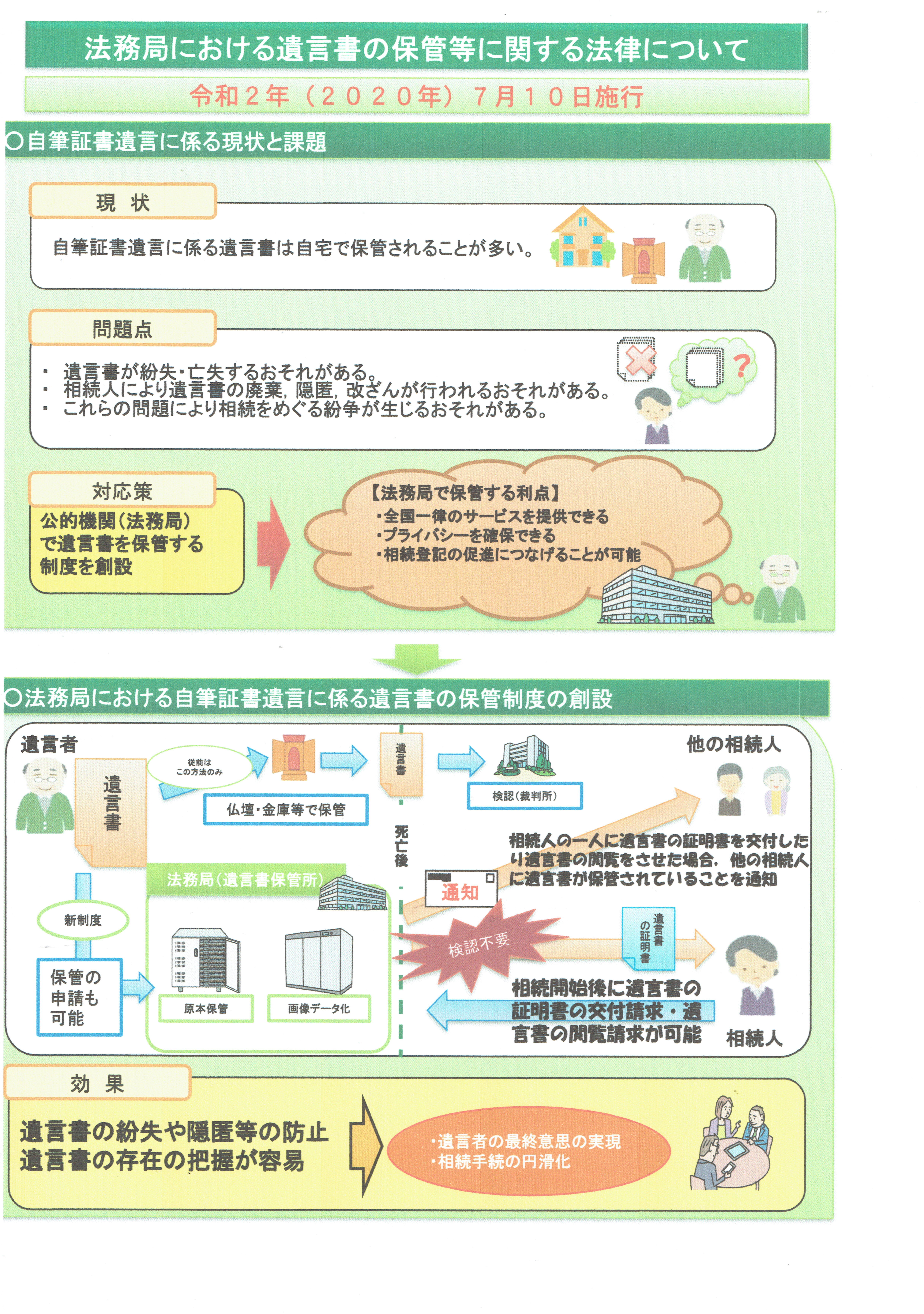 令和2年7月10日より、自筆証書遺言の保管制度がスタートしました。(画像は法務省HPより抜粋)